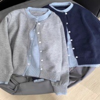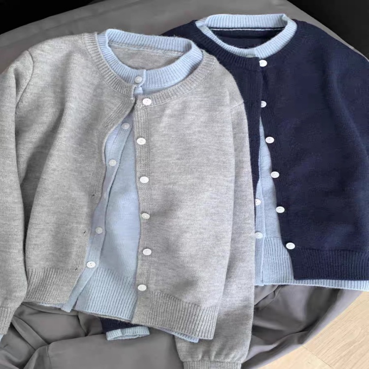 2025早春新款 韓系軟糯拼接撞色假兩件灰色針織開衫外套 秋季休閒外搭毛衣上衣 柔軟舒適 百搭顯氣質
