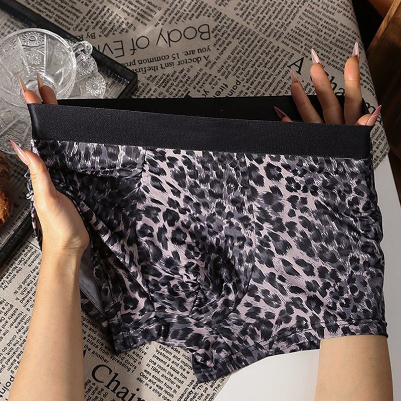 男士內褲豹紋 冰絲平角舒適透氣潮流男生性感個性褲頭四角短褲